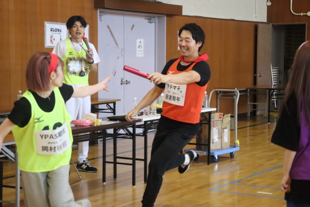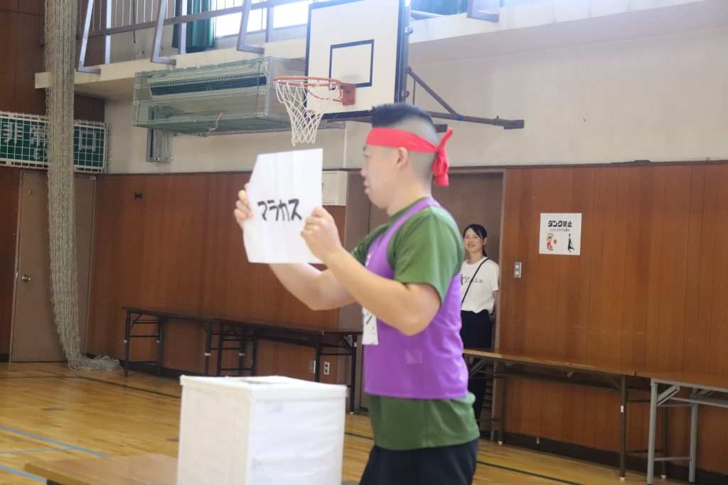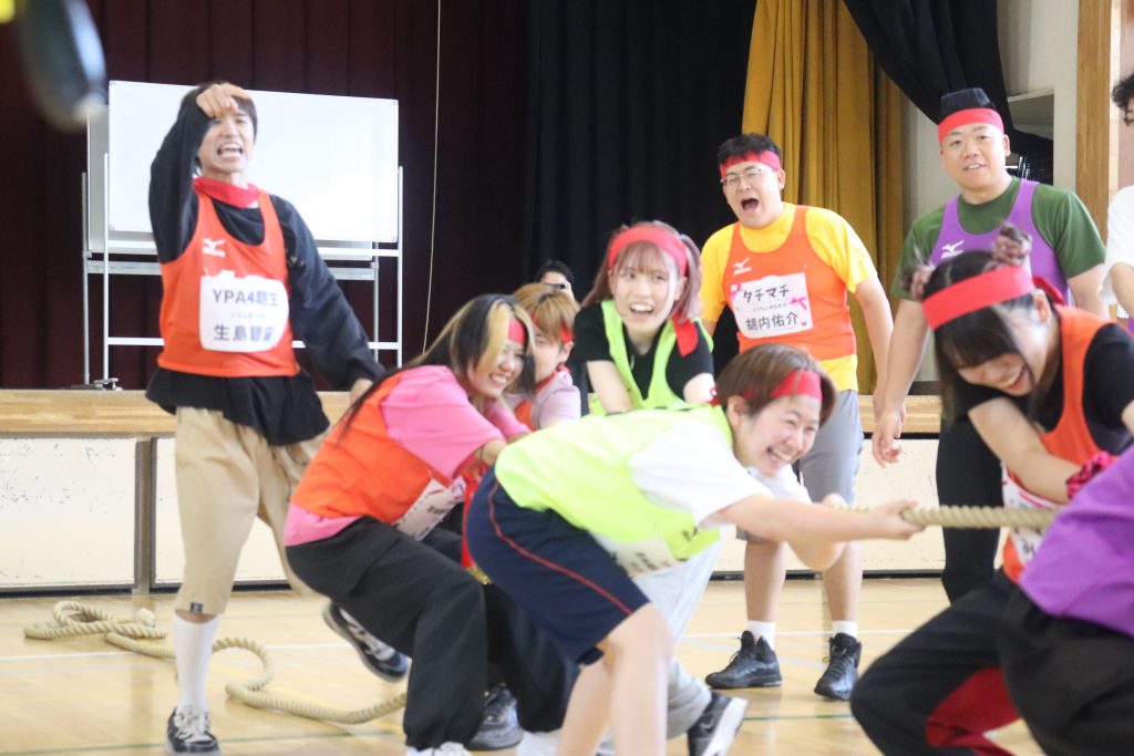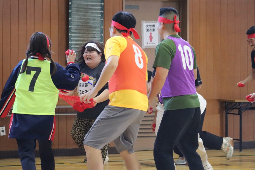 借り物ボケ競争、追っかけ玉入れ、ガチンコ綱引き対決、ガチンコリレーと全4種目の競技をしました。