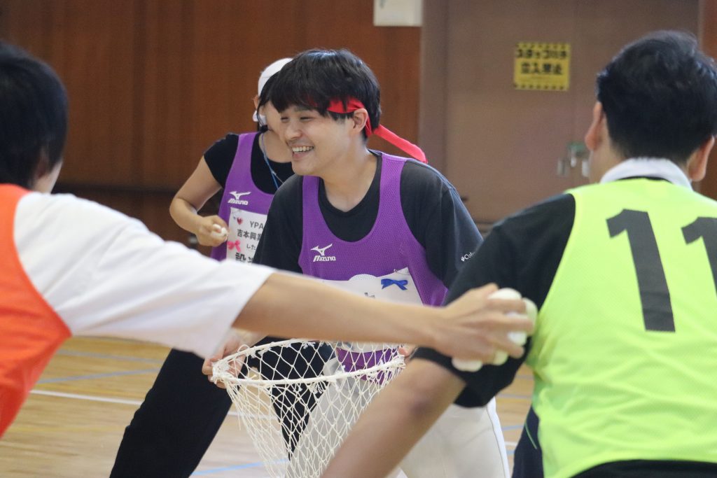 相手チームの芸人さんがカゴを持って走り、そのカゴをめがけて玉を投げ入れるというルールで行われました!
